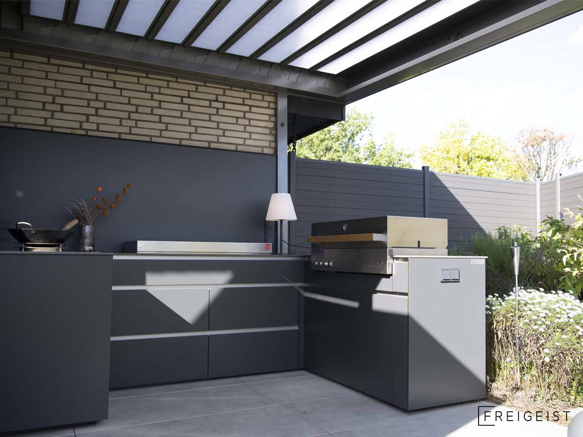 Grillzimmer Outdoorküchen - Massive Qualität trifft maximale Gestaltungsfreiheit. Grillzimmer steht für Outdoorküchen, die kompromisslos auf Langlebigkeit und Design ausgelegt sind. Gefertigt aus 5 mm starkem, pulverbeschichtetem Stahl mit hochwertiger KTL-Grundierung, sind alle Module absolut wetterfest – selbst in salzhaltiger Umgebung oder am Pool. Jedes Element ist modular aufgebaut und kann individuell kombiniert, erweitert oder vollständig maßgeschneidert geplant werden.